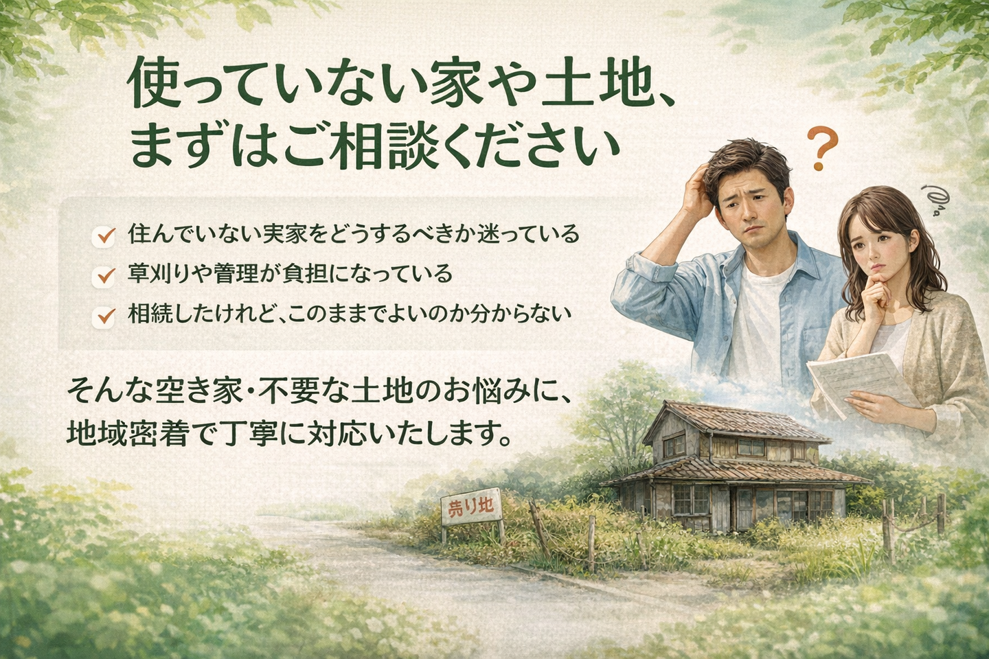 解体・現況売却・活用など、早く相談するほど選択肢が広がります